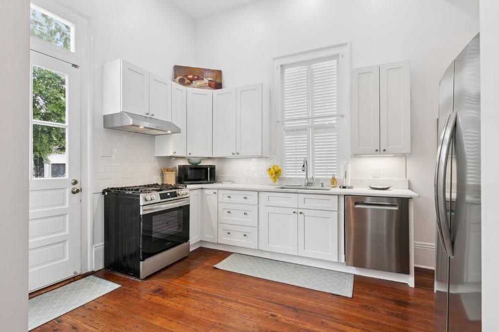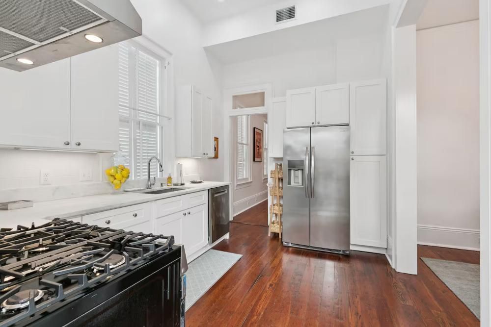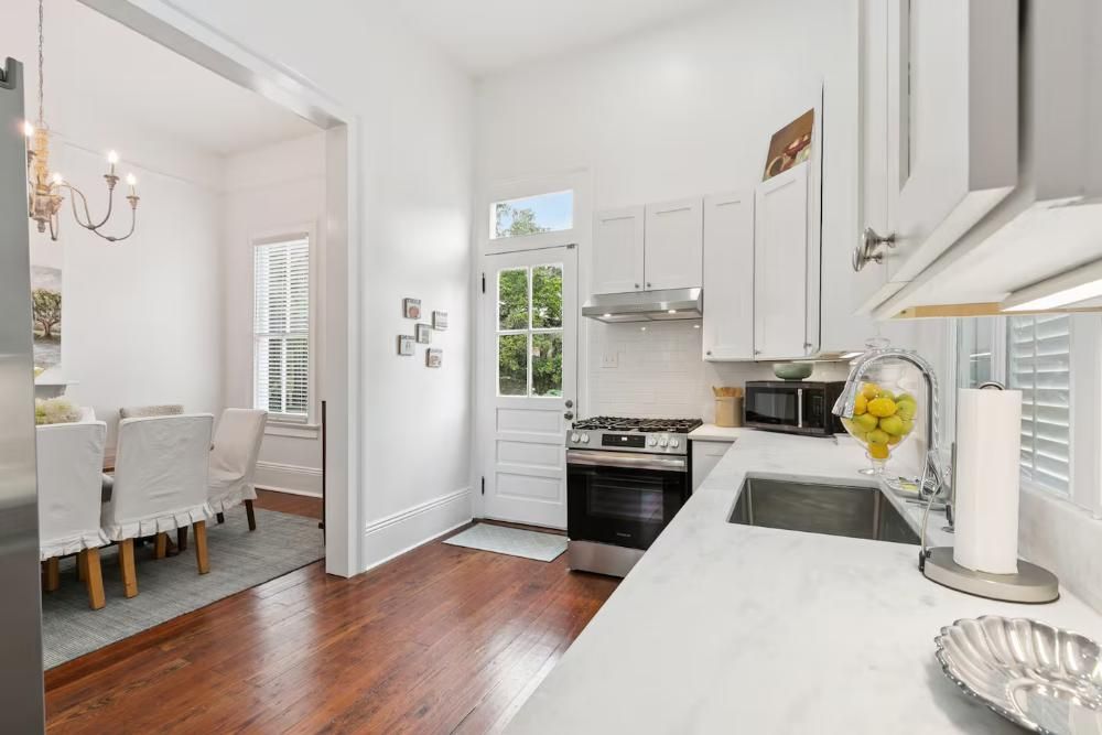 This house has just been completely gutted and renovated in beautiful fashion. High ceilings and hard-wood floors makes this the quintessential New Orleans property. All 3 bedrooms are located on the 2nd floor and each has its own private bathroom. 2 bedrooms have a King bed and the 3rd bedroom has a Queen. There is a laundry room with full washer and dryer on the 2nd floor. Enjoy the living area on the 1st floor with a fully stocked kitchen, dining room with table and seating for 6, living area with plush sofa and two swivel chairs and a smart tv and a 1/2 bath. This is a quiet, family-oriented neighborhood and we ask to please be respectful - absolutely no parties, outdoor noise should be quieted by 9pm.